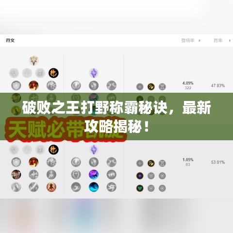 本文为大家带来了破败之王打野的最新攻略,包括英雄定位、技能解析、打野路线、符文选择、装备搭配以及对战技巧等方面,希望玩家们能够认真阅读并实践这些技巧,提高自己的游戏水平,随着游戏版本的更新,玩家们还需要不断学习和探索更多的玩法和策略,让我们一起享受破败之王带来的战斗乐趣吧!